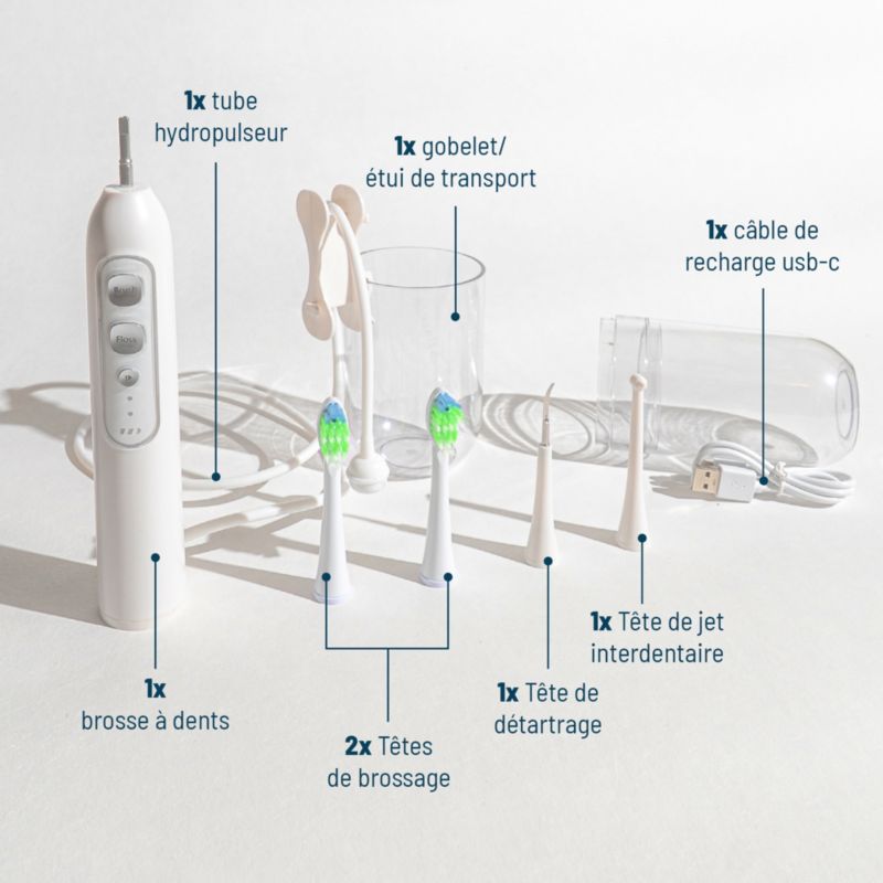 - Technologie : le combiné dentaire associe l'hydropulsion au brossage pour un nettoyage toujours plus complet