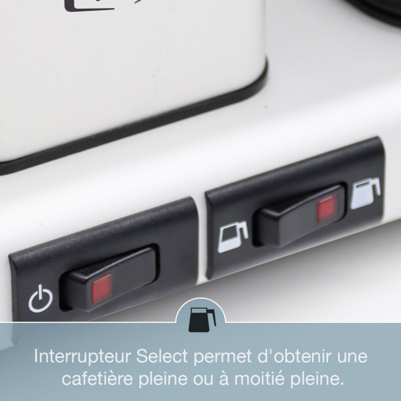 - Cafetière : : filtre, l'eau se déverse goutte à goutte pour une extraction douce de votre café. Le café coule alors dans la verseuse et est prêt à être servi!