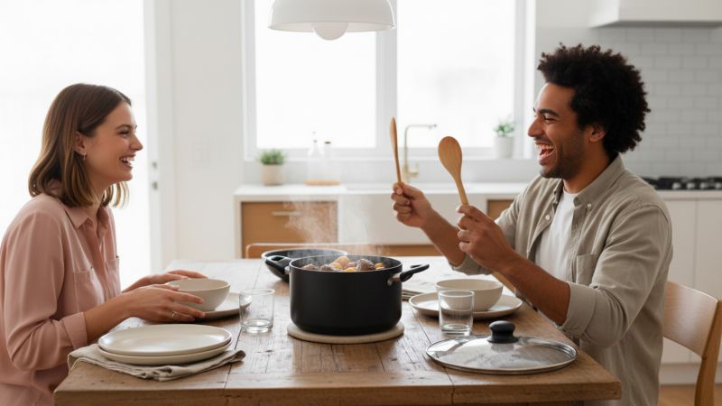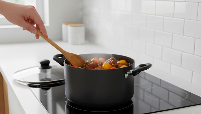- Revêtement intérieur : La céramique permet une cuisson saine sans PFAS. Son antiadhérence naturelle facilite les préparations délicates avec peu de matière grasse et un nettoyage express