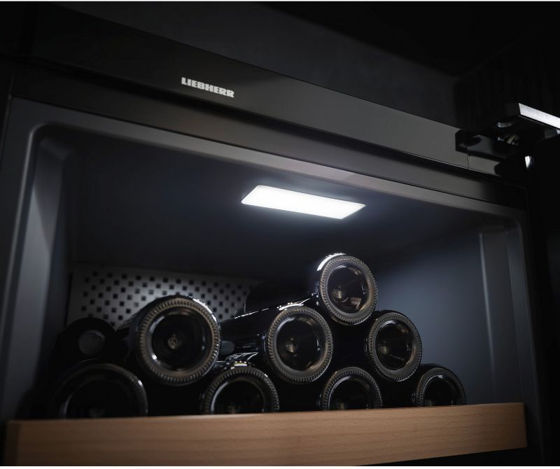 - Eclairage : plafonnier LED, cet éclairage permet une économie d'énergie et n'endommage pas le vin avec des rayons UV nocifs.