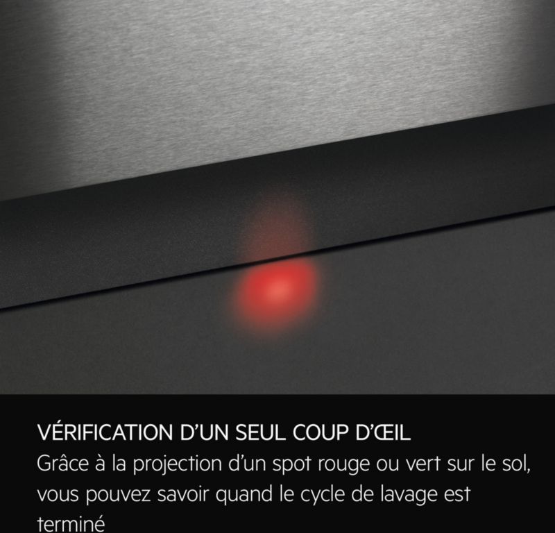 - Avantage de l'affichage au sol : Indique que le produit est en fonctionnement. Pour un séchage optimal, attendre l'extinction du voyant (même si la porte est déjà ouverte)
