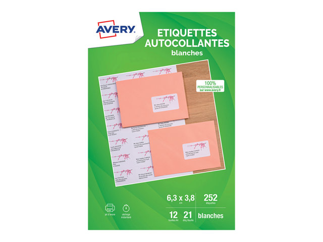 • Quantité de cartes / d'étiquettes par feuille / rouleau : 21
