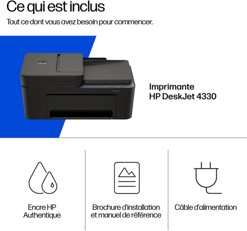 - Référence constructeur : DeskJet 4330 éligible Instant Ink