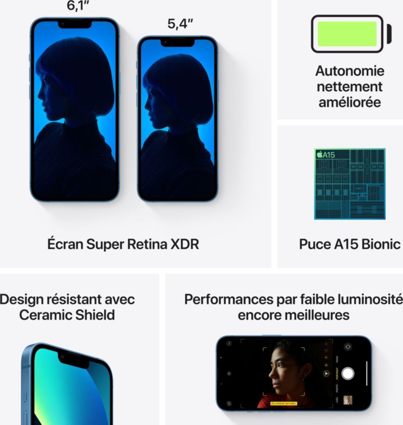 Smartphone APPLE iPhone 13 Bleu 256Go Batterie Neuve Reconditionné (réf : 1234727)