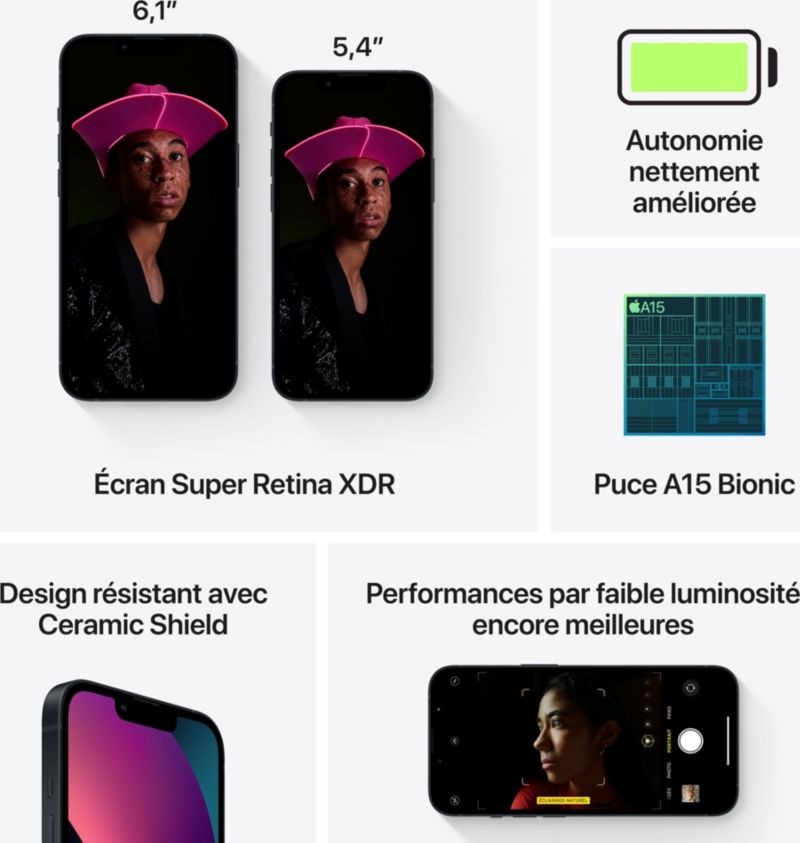 - Taille de l'écran (diagonale, en pouces) : 6,1" soit 15,5 cm