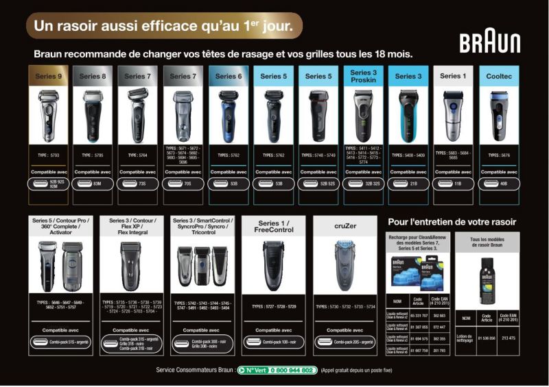• Particularité : Compatible avec l'ancienne et la nouvelle génération de rasoirs Series 7 (799cc, 795cc, 790cc-4, 760cc, 750cc, 735s, 730)