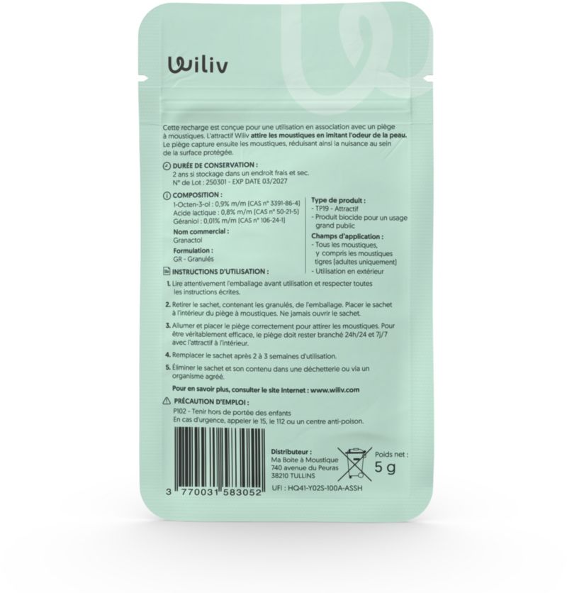 Le + : Ultra-Attractif Willo ! Recharge olfactive pour capter moustiques communs et tigre.