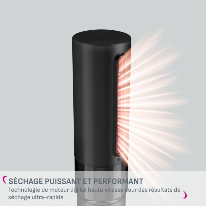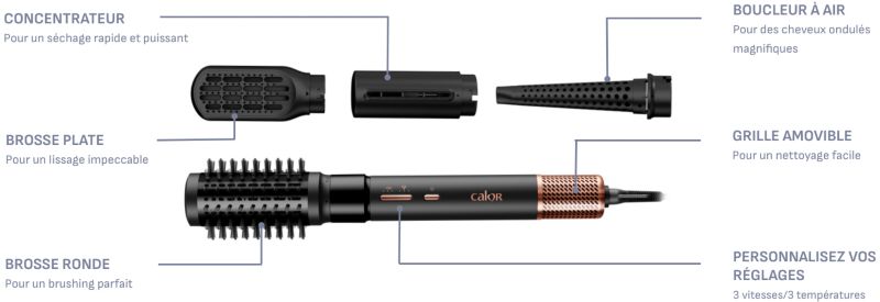 Le + : Ses accessoires pour brushing avec volume, cheveux lisses ou boucles rebondies.