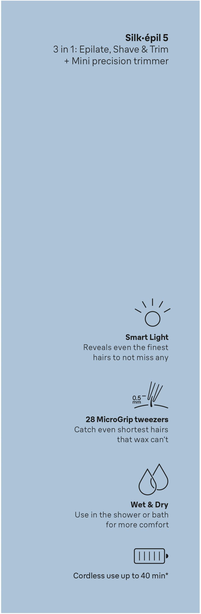 - Le saviez vous? : L'efficacité de l'épilation dépend de la technologie de votre épilateur, de la flexibilité de sa tête et du nombre de pincettes