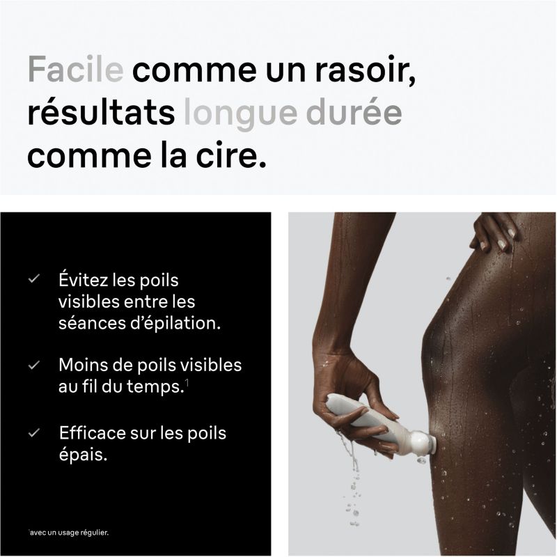 - Utilisable sous l'eau : oui, le contact de l'eau chaude sur la peau, facilite et adoucit l'épilation