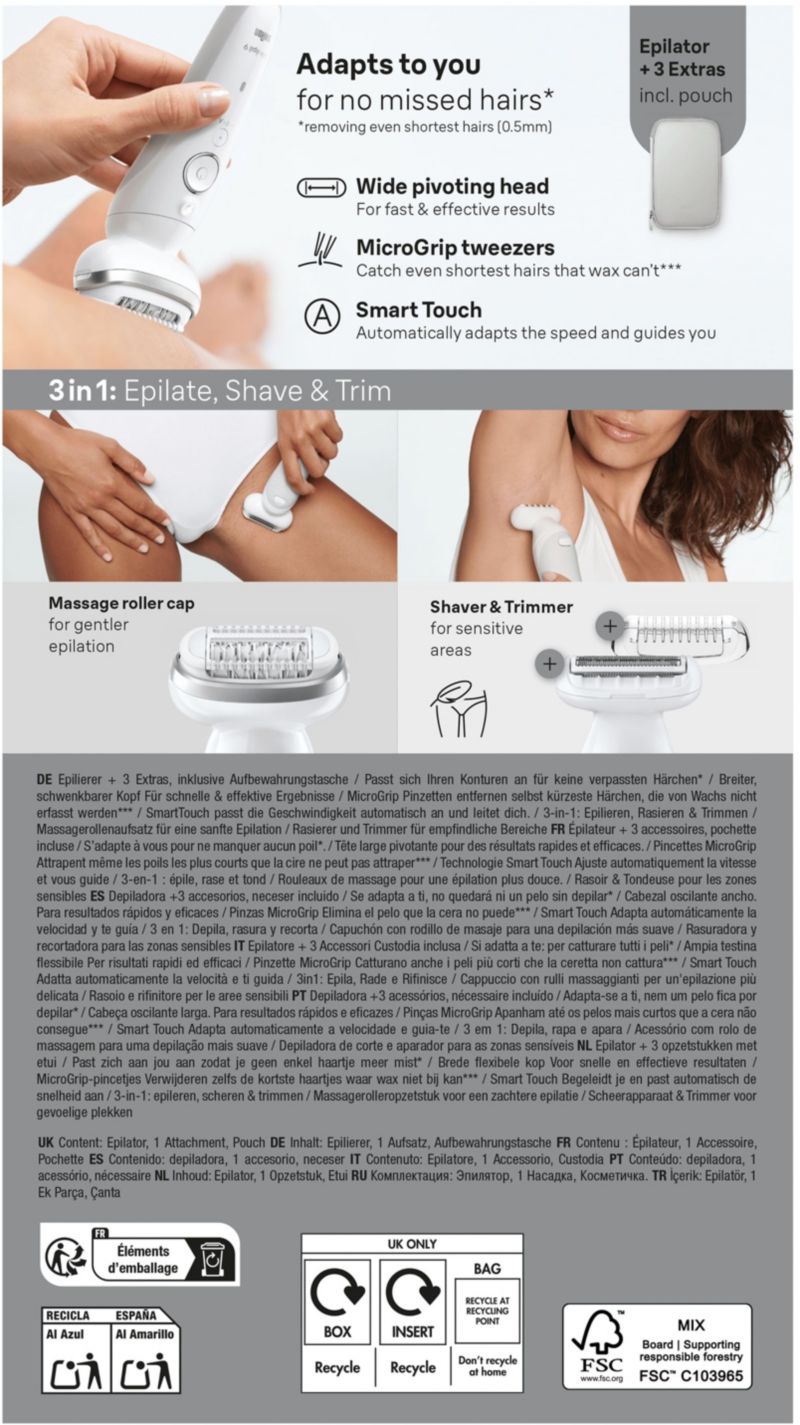 - Le saviez vous? : L'efficacité de l'épilation dépend de la technologie de votre épilateur, de la flexibilité de sa tête et du nombre de pincettes