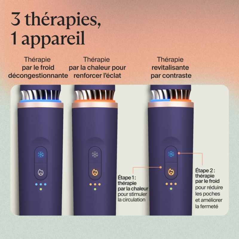 - Thérapie par le froid : permet de réduire les poches, d'atténuer les cernes , de revitaliser les yeux fatigués et de réduire l'apparence des pores