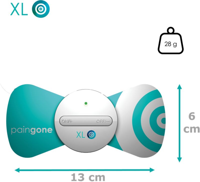 Le + : Patch d'électrothérapie à coller sur la zone douloureuse. Intensité réglable.