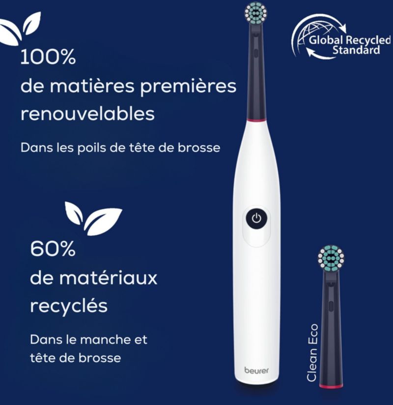 - Technologie : brossage oscillo rotatif (2D), les oscillations et rotations permettent un nettoyage en profondeur et d'atteindre les zones difficiles d'accès