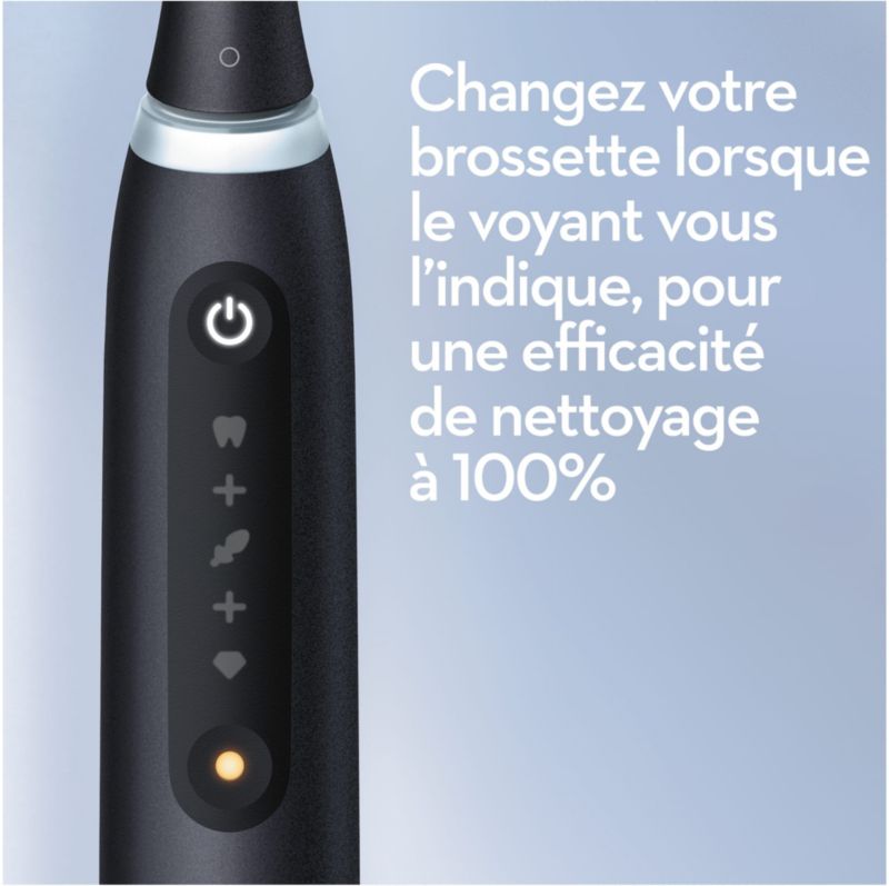 - Rappel de remplacement de brossette : oui, changez votre brossette lorsque le voyant vous l'indique pour garder une efficacité de brossage à 100%