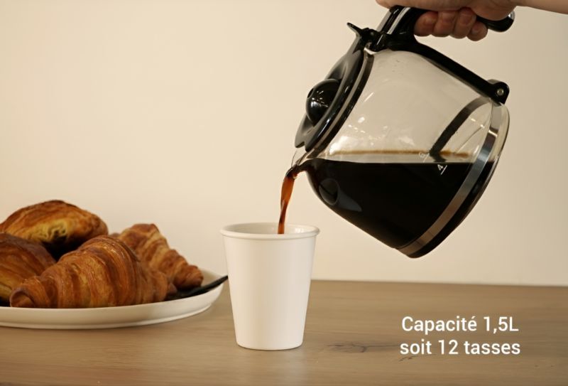- Capacité de la verseuse : 1,5 L (soit 12 tasses)