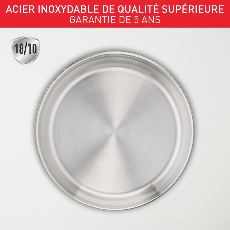 - Revêtement intérieur : L'inox offre une durée de vie exceptionnelle même en usage intensif. Il assure une cuisson saine et une diffusion homogène de la chaleur. Il est compatible tous feux et se nettoie très facilement