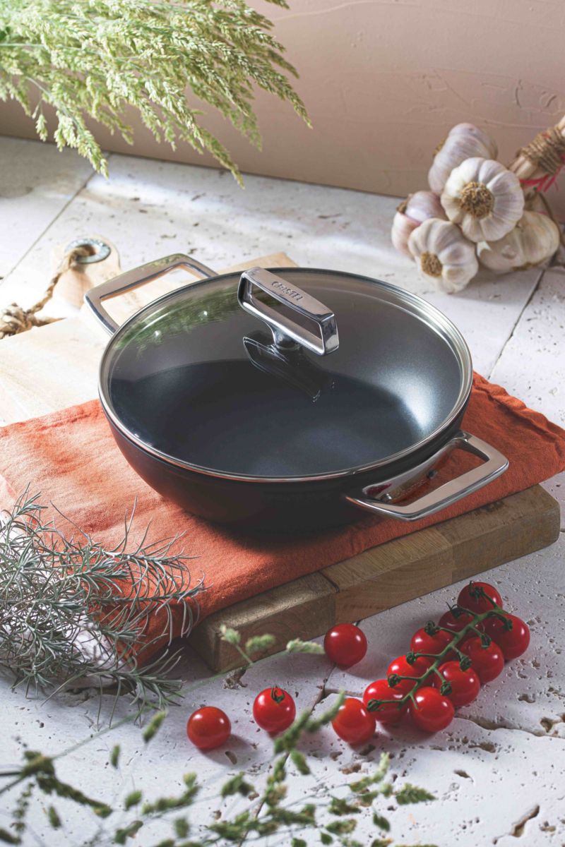 - Revêtement intérieur : La céramique permet une cuisson saine sans PFAS. Son antiadhérence naturelle facilite les préparations délicates avec peu de matière grasse et un nettoyage express
