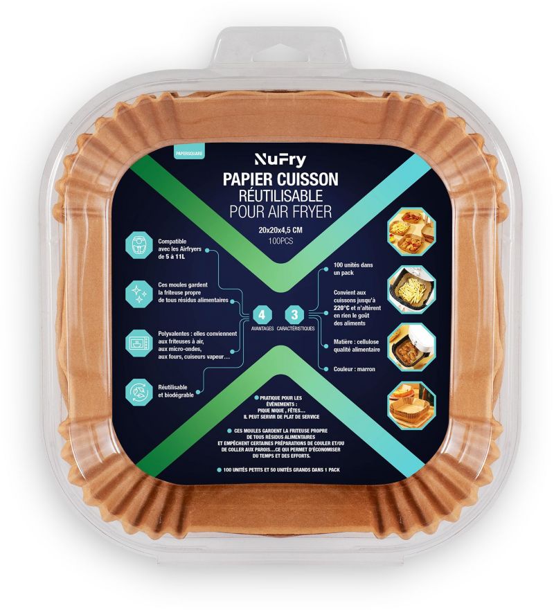 Papier cuisson NUFRY Airfryer Papersquare 100 pièces (réf : 1216888)