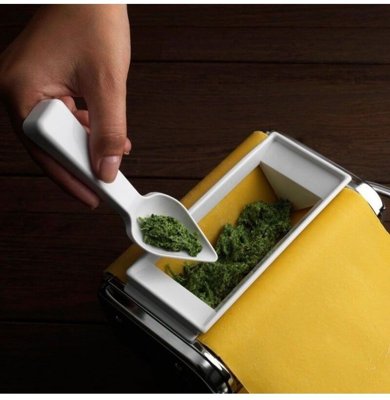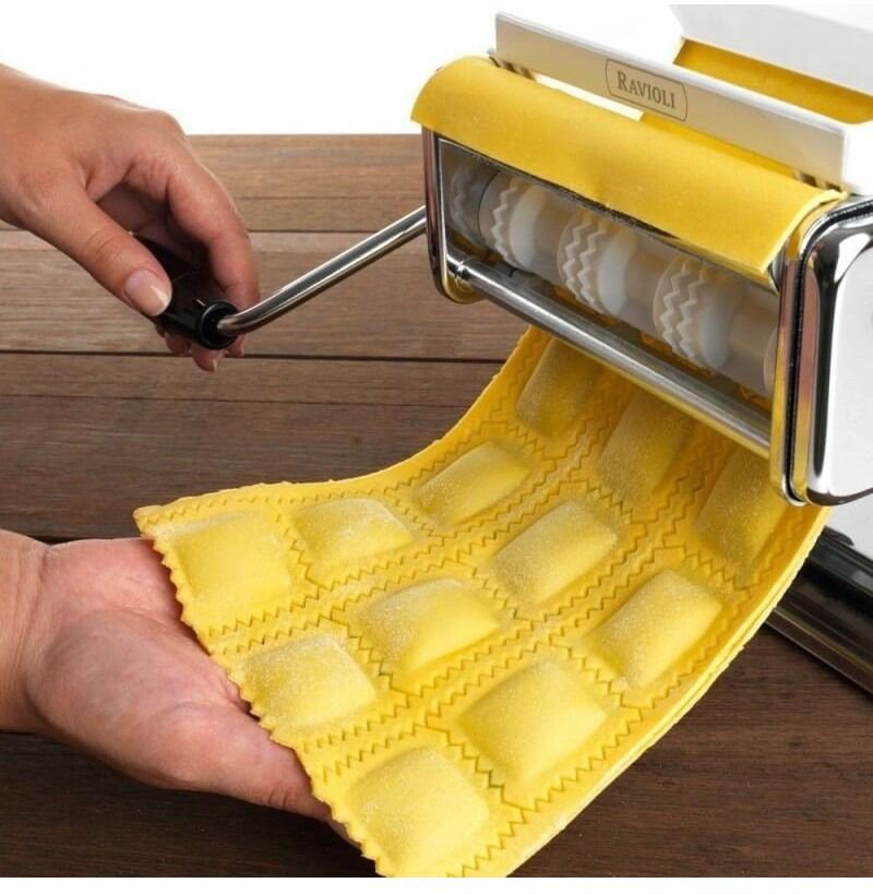 - Particularités : Les Ravioli sont un format de pâtes farcies de forme carrée d'une largeur de 45 mm. L'épaisseur conseillée de la feuille de pâte correspond à la position n°6 du régulateur de la machine.