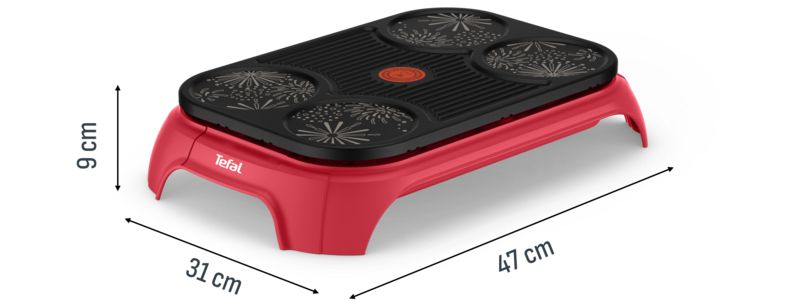Le + : Sa plaque de cuisson 2-en-1 pour cuire des crêpes et griller d'autres aliments simultanément.