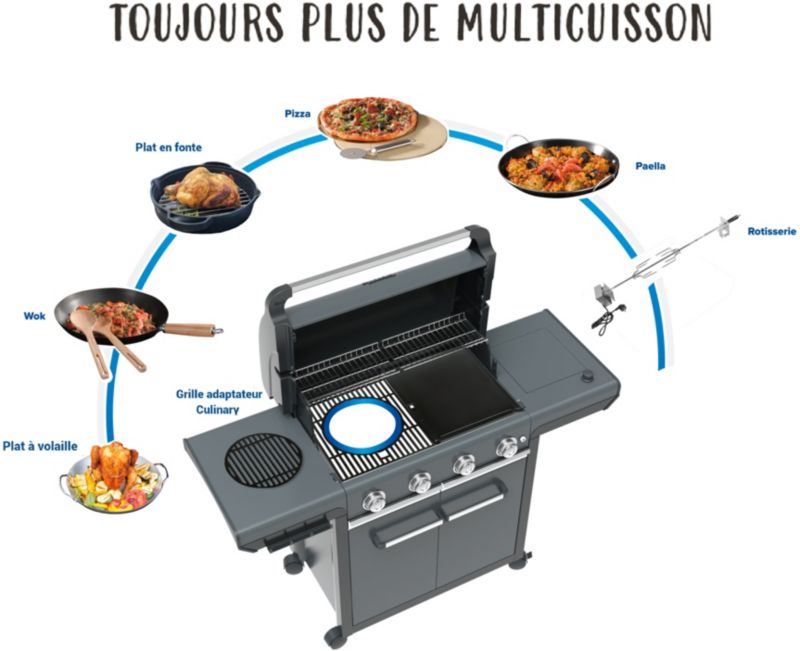 - Grille : Compatible avec tous les accessoires Culinary Modular Campingaz