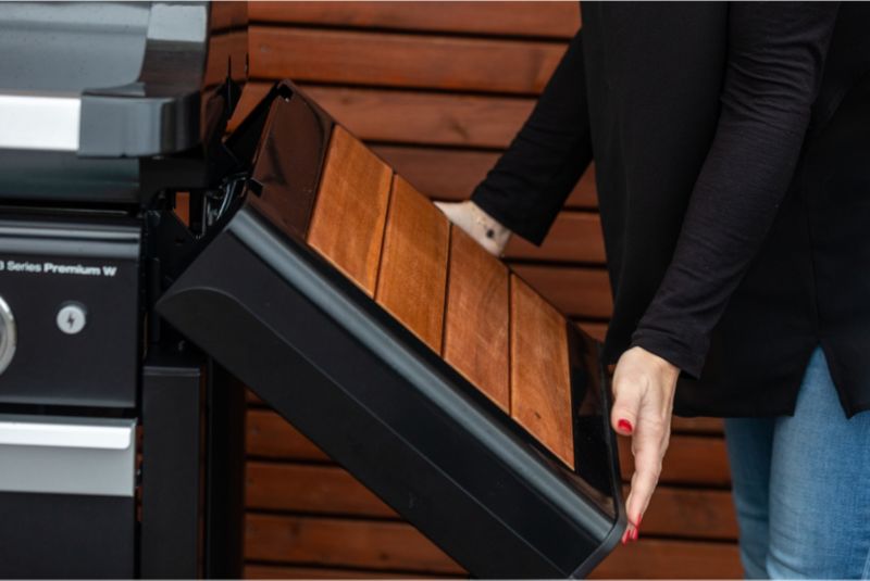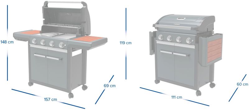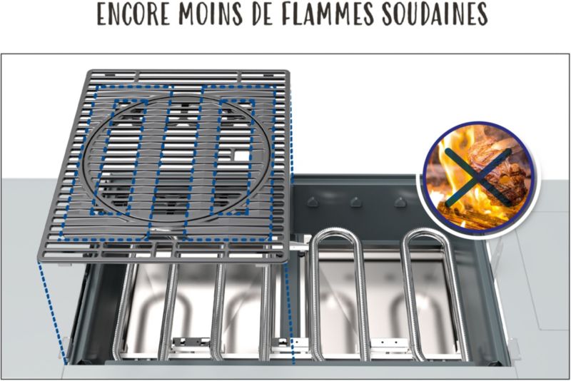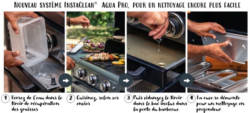 Le + : Confort de nettoyage, tablette pliables, grille modulable et réchaud latéral.
