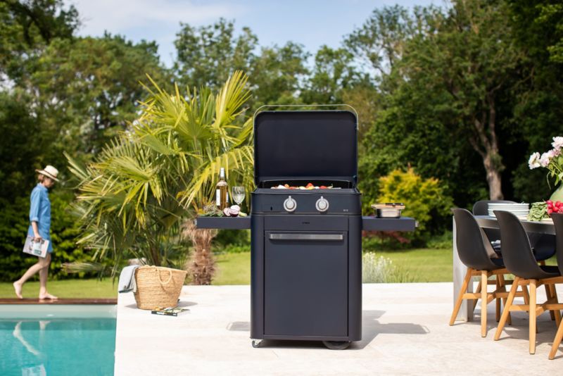 Plancha gaz ENO Enosign 65 bleu navy sur chariot, 56x40 cm (réf : 1140808)