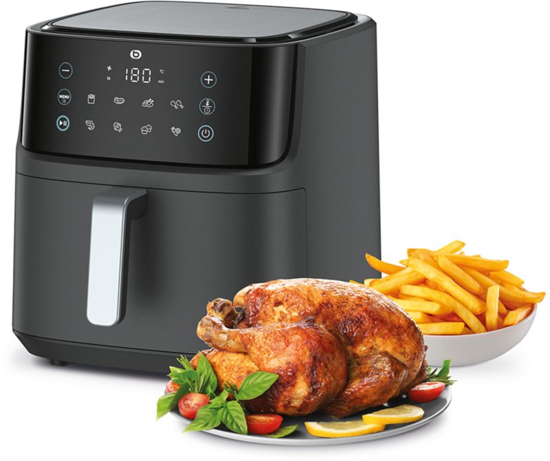 - Fonctions friteuse : frire, rôtir, griller, réchauffer, cuire, cuire comme dans un four, déshydrater, maintenir au chaud