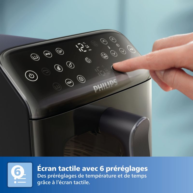 - Fonctions friteuse : frire, rôtir, griller, réchauffer, cuire, cuire comme dans un four, déshydrater, maintenir au chaud