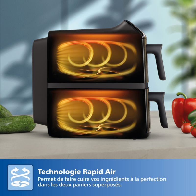 Airfryer PHILIPS NA462/70 Friteuse sans huile Vertical Duo Noir/Cuivre, Série 4000 10L (5+5L) (réf : 1228961)