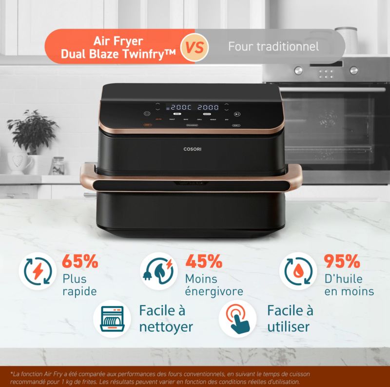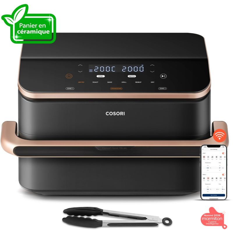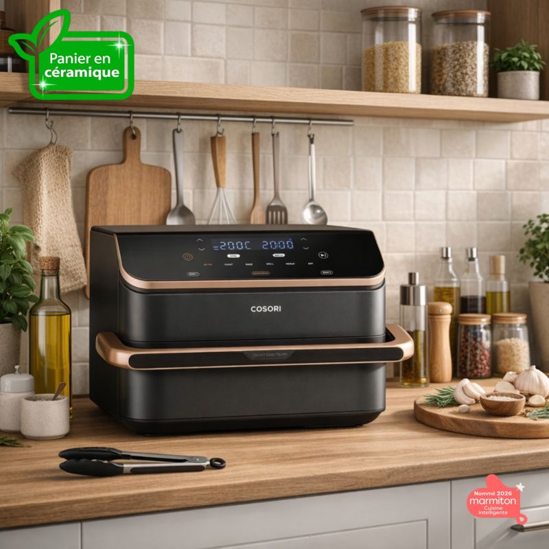 Friteuse sans huile COSORI Twinfry Pro Ceramic KAAPAFCSSEU0204A, 10 L, 4 résistances, panier céramique (réf : 1237455)