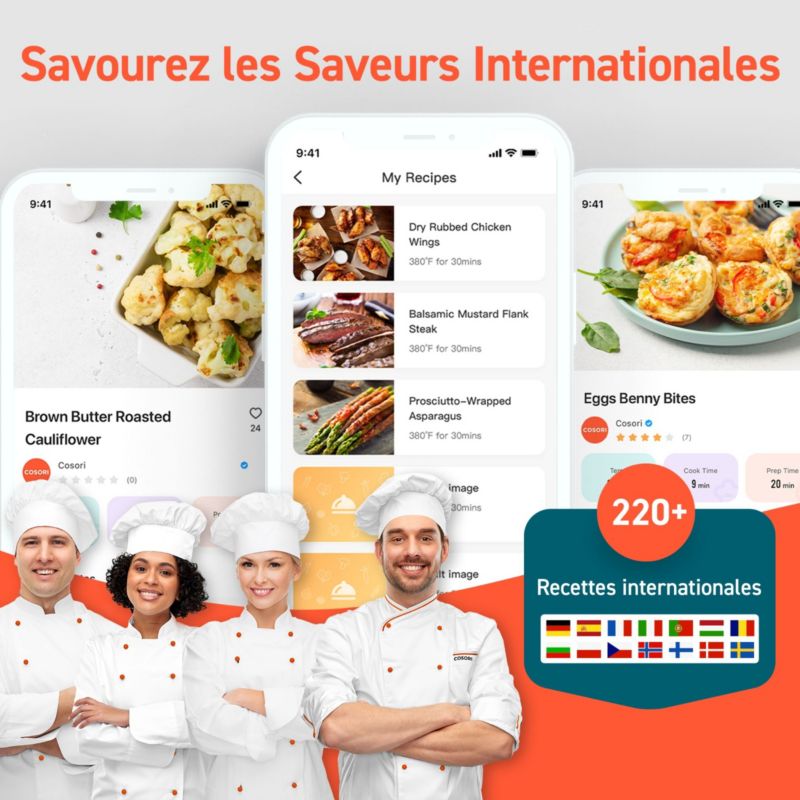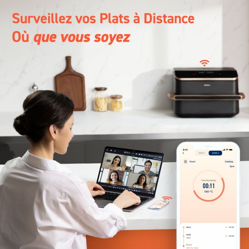 - Connecté : oui, permet de préparer facilement de délicieux repas en connectant votre Airfryer à l'application dédiée