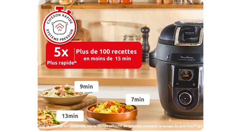 - Idéal pour cuisiner : des pommes de terre en 15mn, un coucous en 30 mn, un risotto en 20 mn