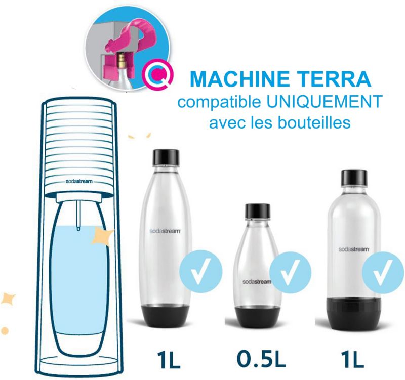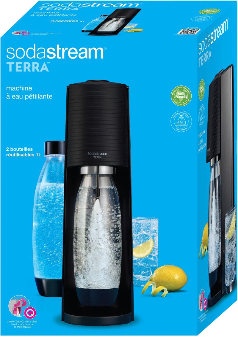 Machine à soda SODASTREAM Terra Noire pack 2 bouteilles + 1 recharge (réf : 1166893)