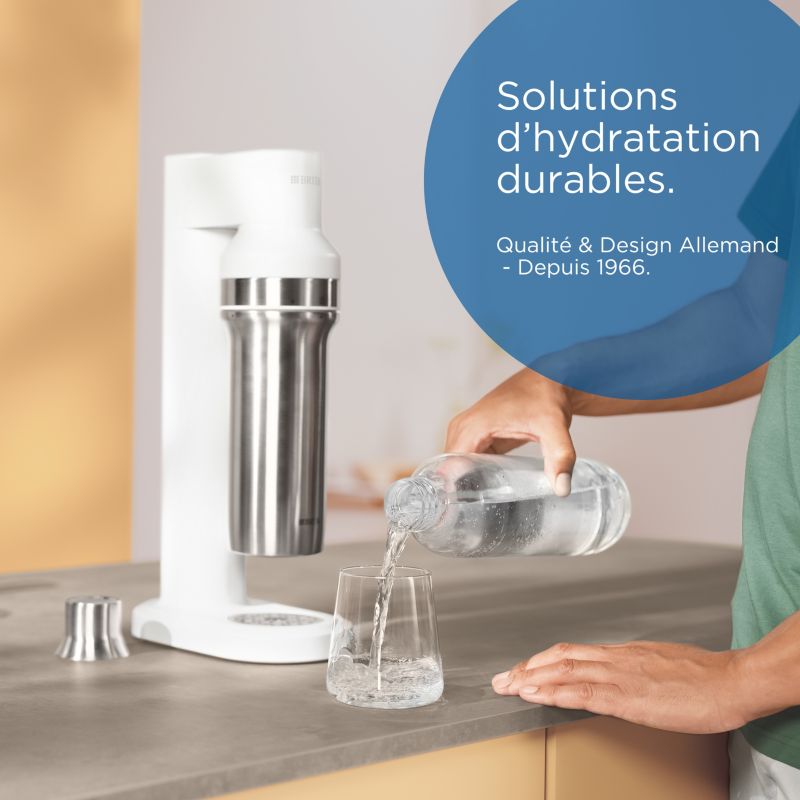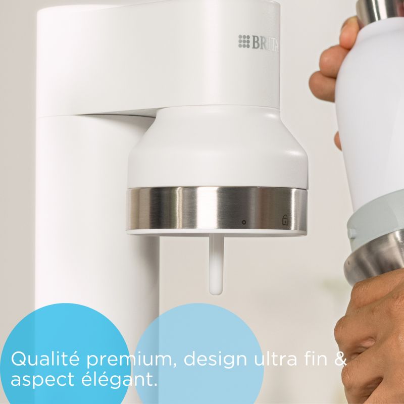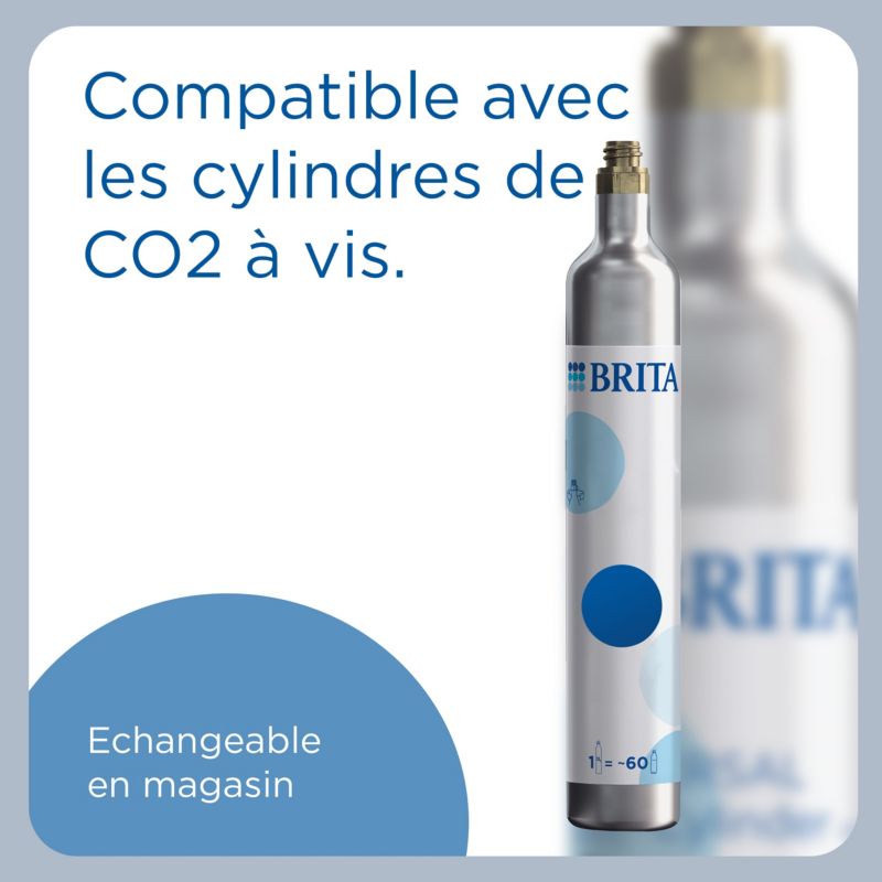 - Fonctionnement : Manuel, le cylindre de CO2 à vis BRITA permet de gazéifier jusqu'à 60L d'eau pétillante