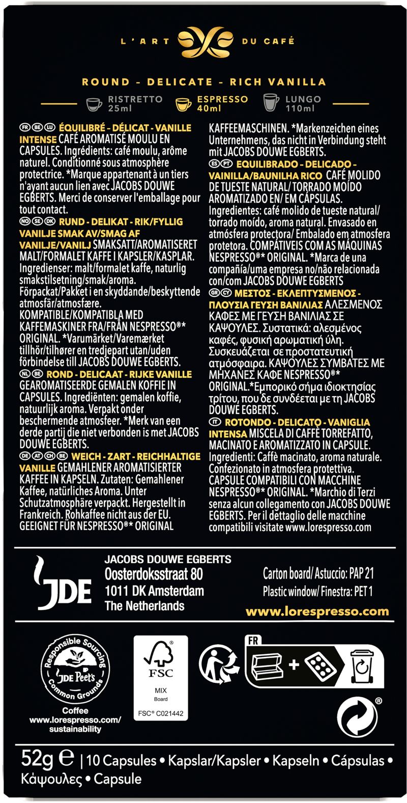 - CAPSULES L'OR ESPRESSO VANILLE X10 52G