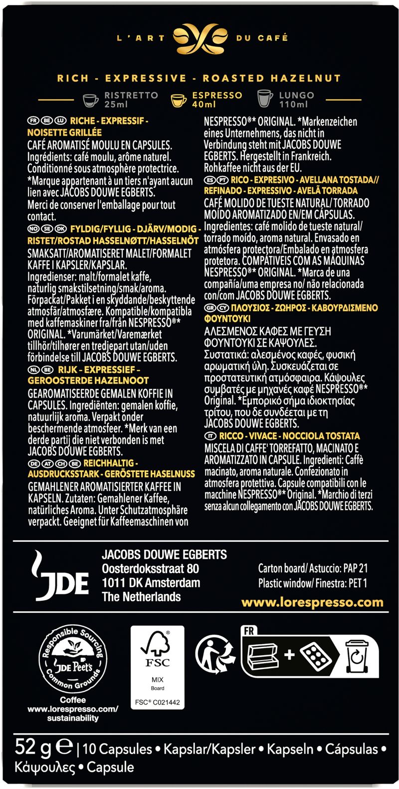 L'OR Espresso NOISETTE x10 52g (réf : 1203186)