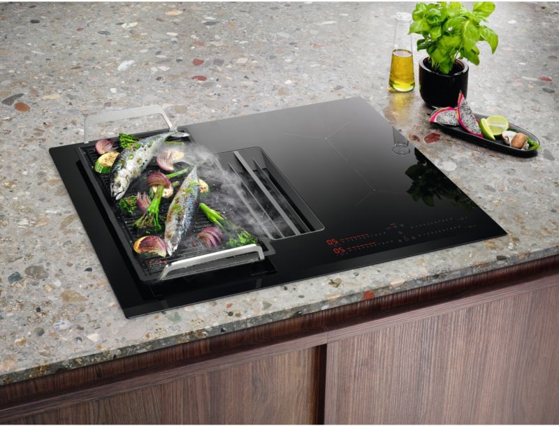 - Interconnexion table/hotte : Oui. Une fois la table de cuisson active, l'éclairage de la hotte compatible s'enclenche et règle la puissance d'aspiration en automatique.