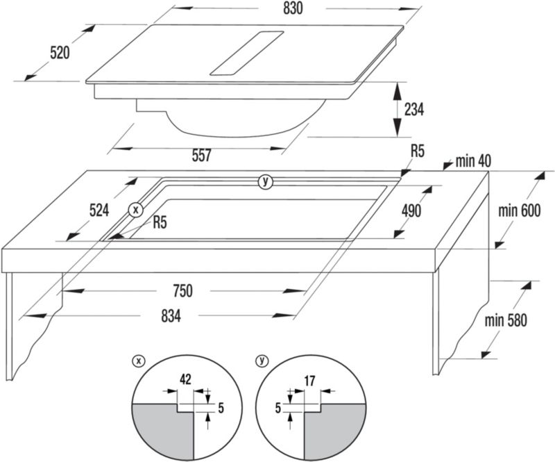 - Installation du kit recyclage sans gaine : permet une installation optimisée de votre table évitant ainsi l'utilisation de gaines et de coudes. L'extraction de l'air se fait directement dans le vide sanitaire de votre meuble.