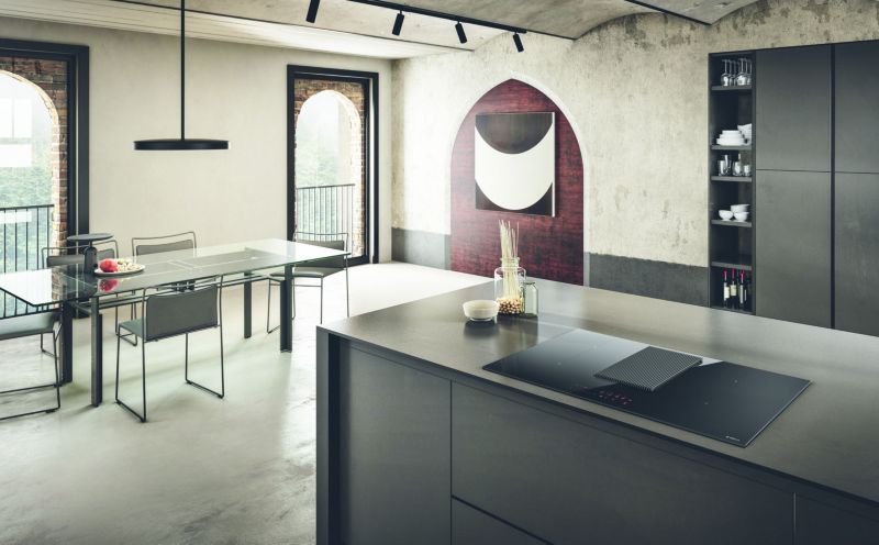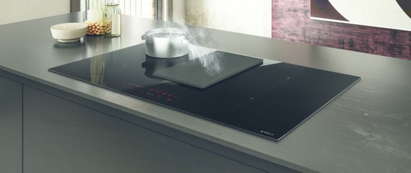 - Type de table : induction avec hotte intégrée, solution pratique et esthétique pour combiner la table de cuisson et la hotte. Elle nécessite un encastrement spécifique (voir infos dimensions).