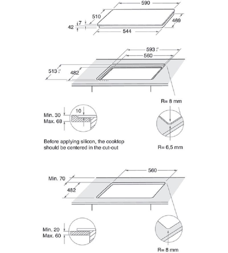 - LxHxP (encastrement) : 56 x 2 x 48.2 cm