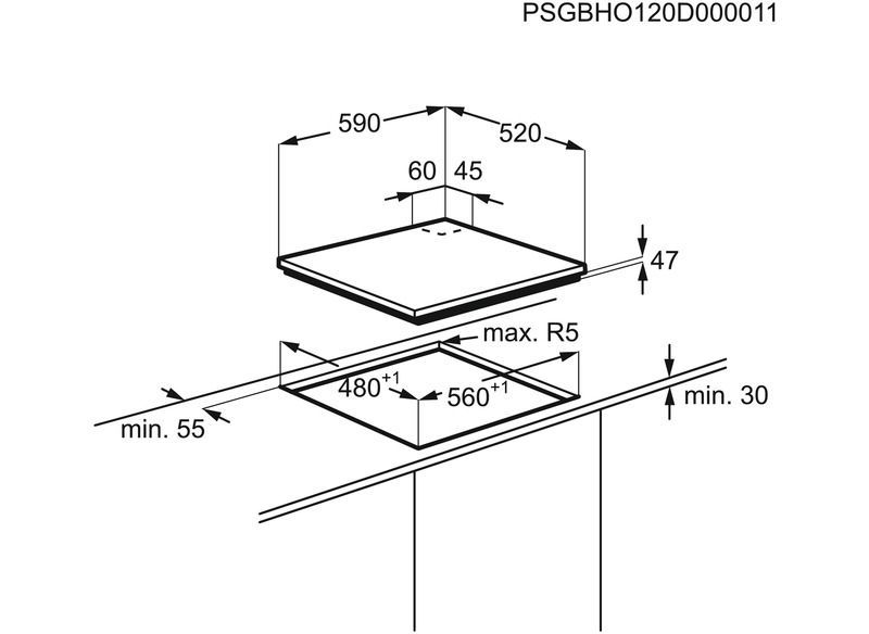 - LxHxP (encastrement) : 56 x 4.7 x 48 cm