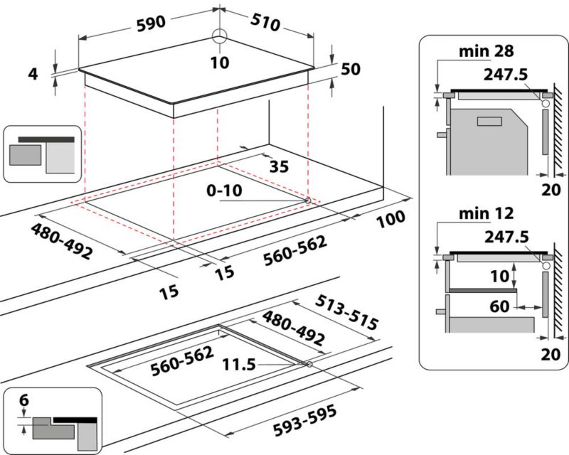 - LxHxP (encastrement) : 56 x 6 x 48 cm