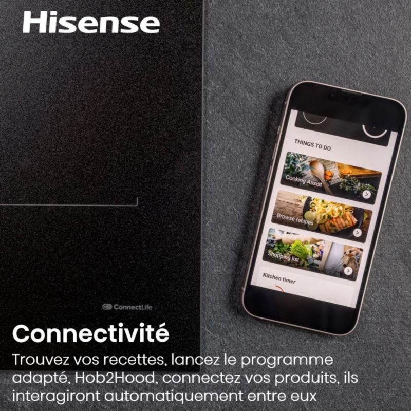 - Spécificités : Fonction "pause" mémorisation de programmes, Accès direct, Interconnexion table/hotte, Table connectée