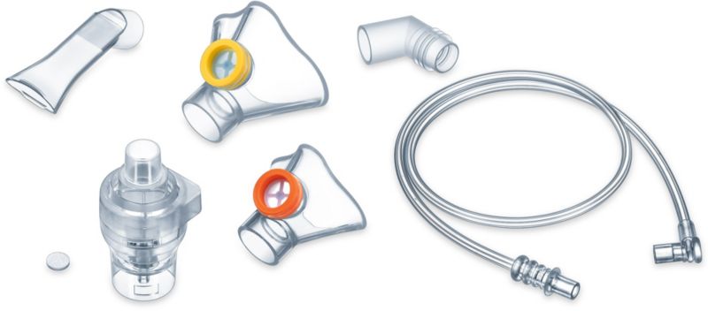 - Contenu du carton : Accessoires : 1 bouteille de nébuliseur avec embout buccal, 1 masque en silicone pour enfant et bébé, 1 raccord coudé, 1 tube à air comprimé, 10 filtres