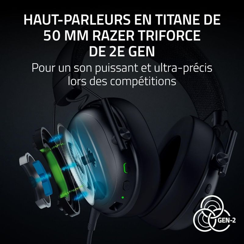 - Spécificités du micro : Micro à très large bande Razer HyperClear amovible de 9,9 mm