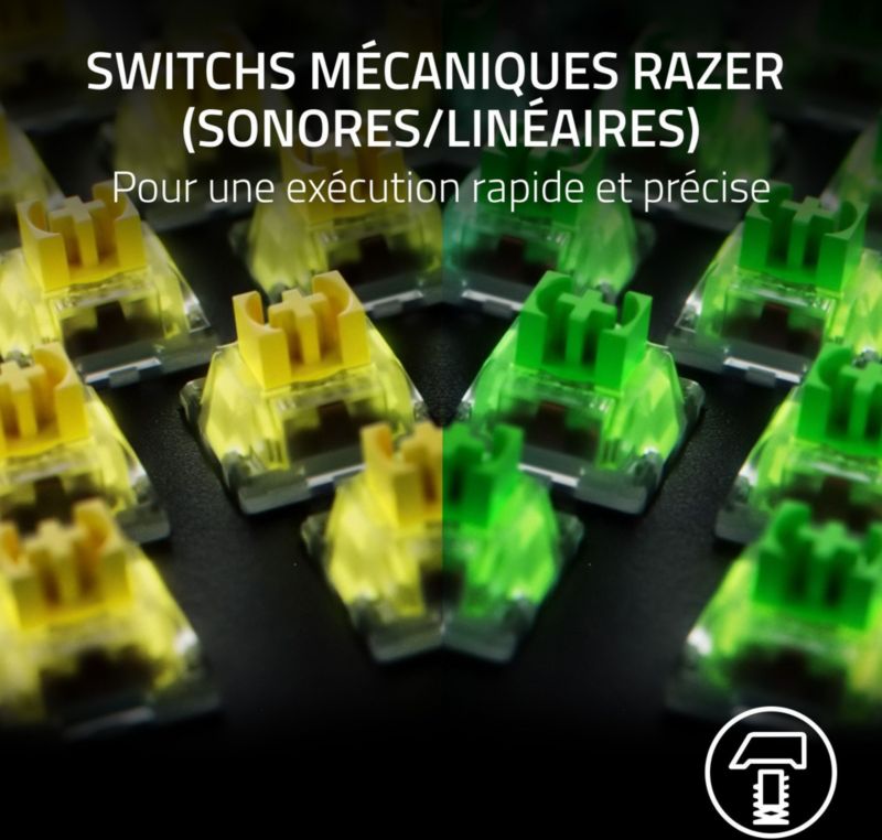 - Type de clavier : mécanique : offre une bonne réactivité. Il n'est pas nécessaire d'enfoncer la touche jusqu'au bout pour déclencher une action en jeu, ce qui rend le clavier particulièrement efficace dans vos actions