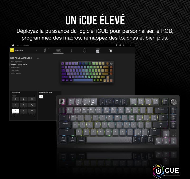 Clavier gamer sans fil CORSAIR K65 PLUS Wireless (réf : 1204391)
