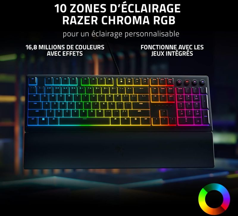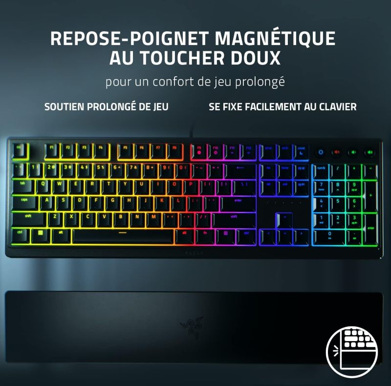 - Type de clavier : mécanique : offre une bonne réactivité. Il n'est pas nécessaire d'enfoncer la touche jusqu'au bout pour déclencher une action en jeu, ce qui rend le clavier particulièrement efficace dans vos actions